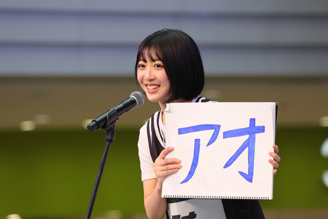 アオは「みなさんこんにちは! アオです。今回はこのオーディションのデビュー曲である“眼差しSniper”を、替え歌で自己紹介ソングにして歌いたいと思います。それでは聴いてください」と切り出し、アカペラで歌い始めた(以下替え歌全歌詞)《♪〜アオです 18歳学生 来月誕生日19歳 ラストティーン ファイナリストになれたからには絶対夢を叶えたい この想いみんなに届け お願い皆さんの応援が必要なんです Sniper見つけて私を 絶対 キラキラ輝いてみせるから 永遠 努力は得意です 諦めません ステージで輝くアイドルになりたい》と歌唱力と企画力の高さでアピールした。