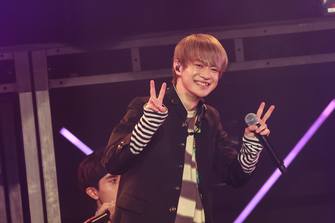 そして「メッチャ緊張してるんですけど、よろしくお願いします!」(ジャン)とスタートした学園祭本番では、初期曲「The Survivor」を皮切りに、倍速ダンスを誘う「ゲットレジャーニー」、久々の披露に歓声が沸いた「ワチャ-ガチャ!」と、一緒に踊れるナンバーで会場を席捲。最後は超鉄板ミクスチャーロック「Untouchable MAX」でBLUEの大合唱を巻き起こし、アンコールでは「ららぽーとでお買い物しましょう!」と、これまで幾度となくインストイベントを行ってきた会場近くのショッピングセンターの名を挙げ、「SHOPPING TIME」で笑顔のフィナーレを迎える。女子には知られざる、男子校のはっちゃけ感を丸ごと盛り込んだようなステージは、年に一度の龍崎高校学園祭だけ。「来年も龍崎高校学園祭、来てくれますか!?」という古川毅の問いかけに、満場の「はい!」の声が応えた。