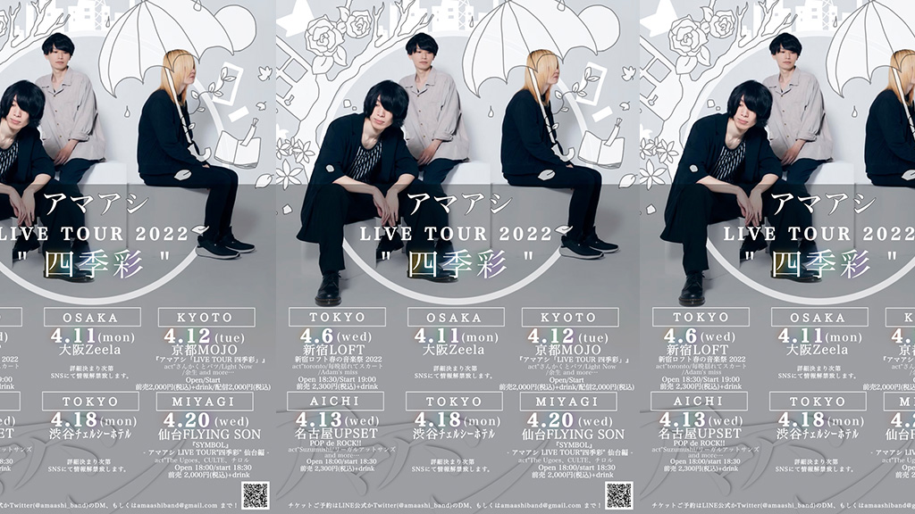 また、アマアシ主催イベント<Refrain #2>と、10月15日に下北沢で行われるWELLDONE SABOTAGE企画<下北沢CLUB 251 WDS presents “Night Chocolate”CLUB 251 30th Anniversary>の両イベント来場者には、2つのバンドのサイン入りTシャツが先着プレゼントされるとのことだ。
