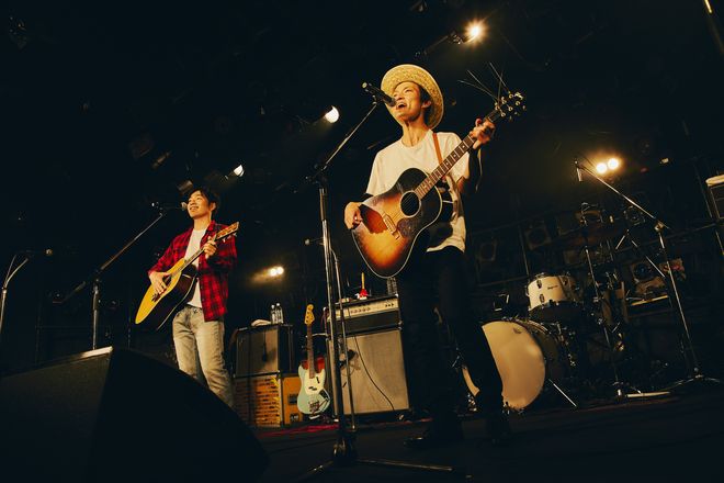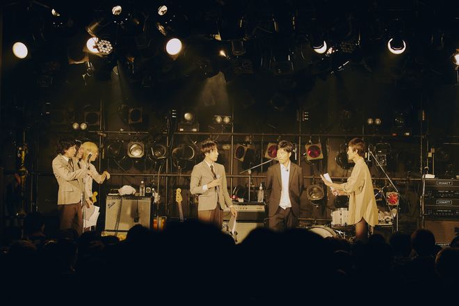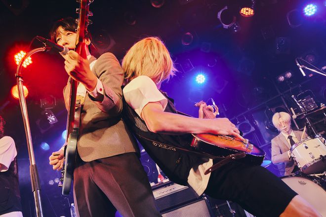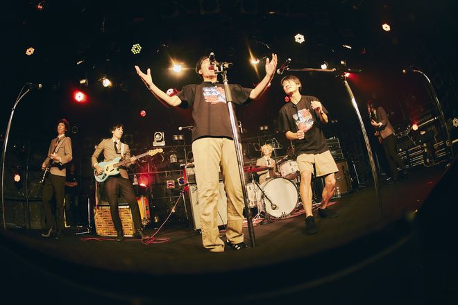 2017年、2020年に続いて、3回目となる今回は<LAUGH ‘n’ ROLL TOUR ~ロックンロールとコント混ぜる奴~>とタイトルでも謳っているとおり、東京、大阪、名古屋を回るツアーにスケールアップ。その初日となった9月26日の東京・渋谷CLUB QUATTRO公演は、満員の観客の大歓声が迎える中、THE BAWDIESにロン毛にサングラスのボーカリストと金髪のギタリストの2人組、サンチョーズを加えた6人による「IT’S TOO LATE」から始まった。サンチョーズを演じるのは、もちろんジャルジャルの後藤淳平と福徳秀介。