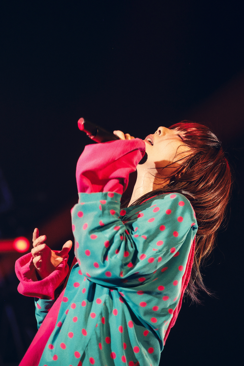 フロアからは悲鳴にも似た歓声と更に温度が上がった拍手が湧き上がり、次の瞬間、その拍手はリズムに合わせたクラップへと変わっていく。4,000人近いオーディエンスの息の合ったクラップは楽曲に厚みを与え、aikoはクラップの加わったサウンドにライブならではの歌声をのせて歌った。