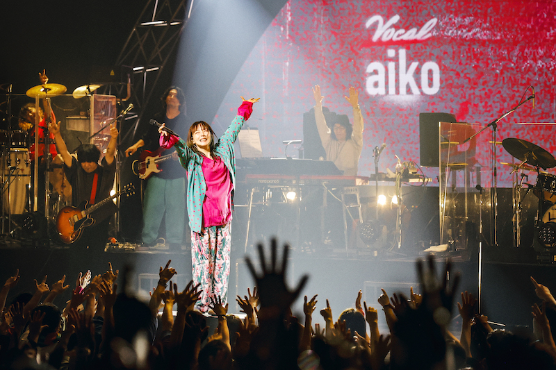 aikoは続けて届けた「アップルパイ」の曲中でメンバー紹介を挟み、オーディエンスのクラップの中で「あたしの向こう」を届け、「ハナガサイタ」で本編を締めくくった。
