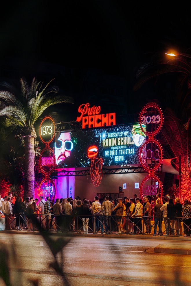 創設者リカルド・ウルジェイによって1973年にイビサ・タウンにオープンした「PACHA」は、それまでなかった新しいスタイルのクラブを確立させ、のちにシンボルマークとなった誰もが一度は見たことがあるであろう真っ赤なパッション・チェリーとともにカルト的人気を誇る。5月から10月までの間、さまざまなジャンルのパーティが毎夜開催され、テクノ、ハウスだけに限らず、ヒッピーカルチャーのルーツであるフラワー・パワーナイトも開催されている。
