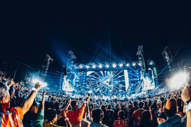 ライブ後半は、すっかり暗くなった夜空を背景に野外ライブの本領発揮。天まで届くようなレーザービームと、全員に配られたリストバンド型ライト(通称・烏帽子ライト)が、地上の星のように無数にまたたく。「東京VICTORY」でぐっと上げて「栞(しおり)のテーマ」ではしっとりと、「太陽は罪な奴」で笑顔にさせて「真夏の果実」で泣かせる、アップダウンの激しい展開も心憎い。「LOVE AFFIR~秘密のデート~」は、テーマはアレだがある意味横浜のふるさとソング。かもしれない。手拍子がひときわ大きくなる、90年代後半の人気曲。