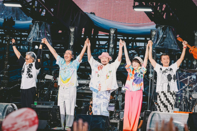 ここで少し時間を巻き戻して、6月に“サザン 2023 新曲三部作”のリリースが発表された時、制作の動機に「長い間やらせていただくと」「ふるさとに対しての感謝や愛郷の念」が深まっていると言った、桑田佳祐のコメントがすっと胸に落ちたのを思い出す。自分とは何か?という自意識ではなく、自分は何に育てられたのか?という、視線の範囲を広げた共通意識。様々な年代のサザンファンにとって、「ふるさととは何か」は、「サザンオールスターズの歌が2023年の今どう聴こえるのか」とリンクするかもしれない。そんなことを思っているうちにライブは後半に差し掛かる。