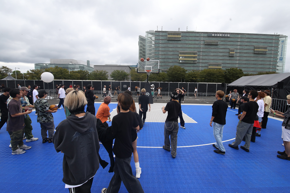 お昼前の早い時間から、10代、20代を中心にしたオーディエンスで場内は終始ずっと賑わっていた。場内は、Bリーグのチーム「アルバルク東京」のバスケットボール・コートや、フードトラック、グラフティアートの展示、また巨大なラジカセを模したDJブースなど、ヒップホップ・フェスとして確実にパワーアップ。思い思いにステージを見たり休憩したら好きなように過ごす野外フェスならではの自由なムードも心地よかった。