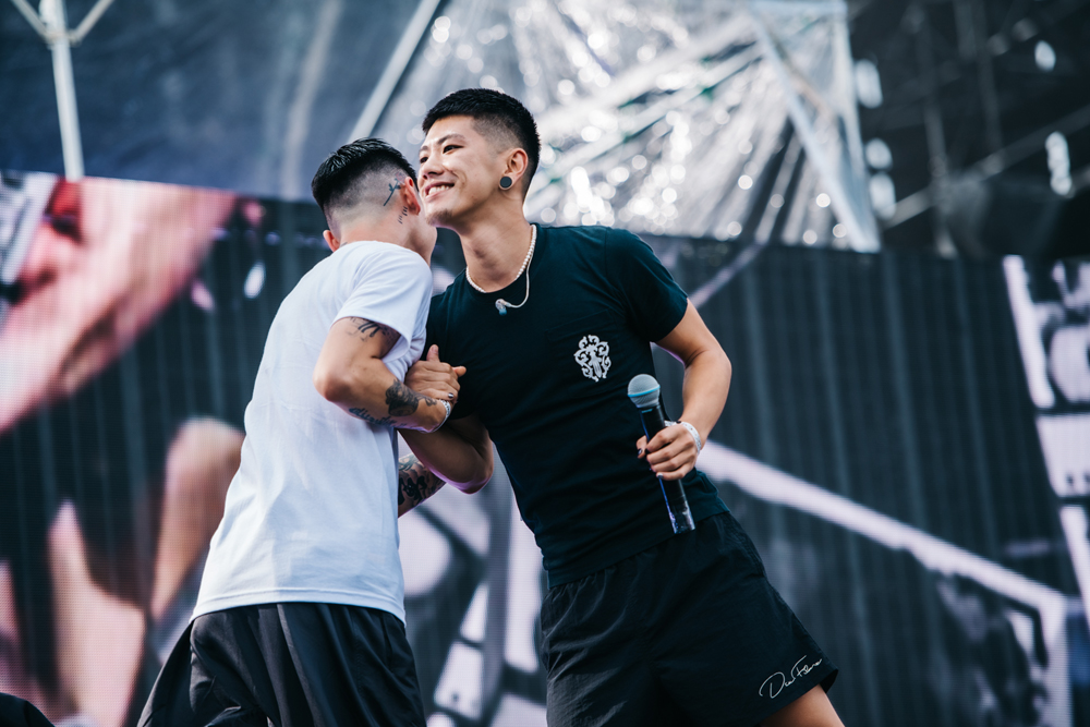 特に印象的だったのは、イベント中盤頃の怒涛のような盛り上がり。登場のアナウンスから一気に人が前方に押し寄せたJP THE WAVY、また、我らのカリスマ=TohjiのステージではGummy Boyも加わり、その後「Goku Vibes」のイントロが流れればDJ CHARIが登場してスイッチ。Hideyoshi、Only U、(sic)boy、Leon Fanourakis、MIYACHI、ゆるふわギャング、LANA、DADAがゲストとして登場するという贅沢な展開を迎えた。また、ステージを走って煽ったりオーディエンスに語りかけたりフロアへ降りたり会場とコミニュケーションをとって、人間性が垣間見えるステージだったのはJin Dogg。REAL-Tへメッセージも送った。