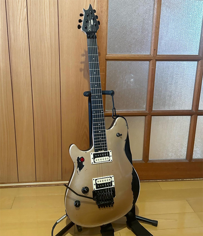 買ってから、しばらくの間はありのままの姿で弾いていましたが…我慢出来ませんでした。初めてのギター改造の始まりです。勢いでゴールドトップ化、そしてドリル片手にキルスイッチを増設しました。エディが使用していたレリックのWolfgangを参考にしています。次いでに雰囲気を変えようとレスポールのようなエスカッションを追加しました。充実したギターライフを支えてくれており、とても満足しています。