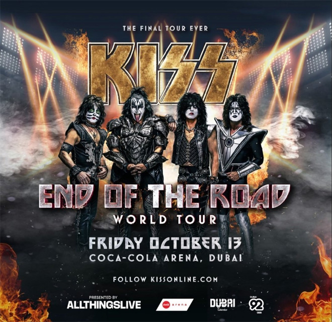 キッスが、今週金曜日(10月13日)にドバイで予定していた公演をキャンセルした。ラスト・ツアー<End Of The Road>の終わりが近づき、ドバイ公演は、北米以外の場所で行われる最後の公演となるはずだった。
