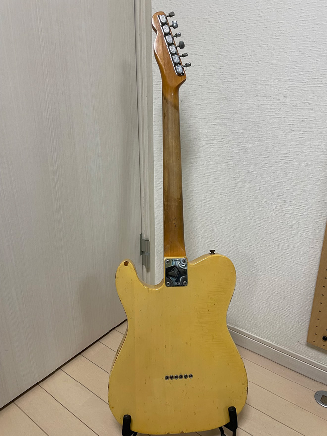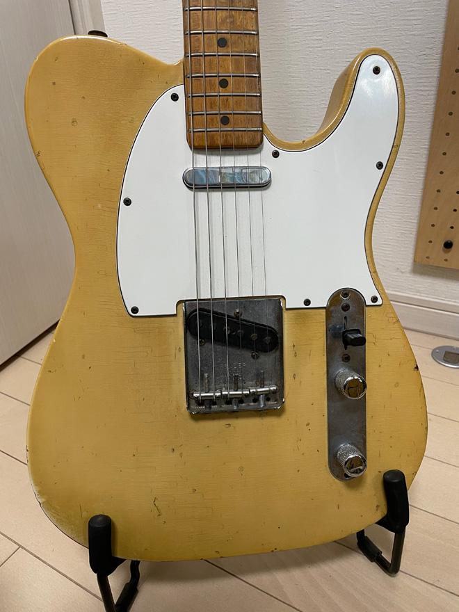 おー、すげえ。なんてカッコいいの。もうね、このルックスからはエロさすら感じますよ。エロすぎる。やばい。迫力のネック、バカなりを信じさせてくれる指板の使い込み、そして無数のウェザーチェックのカッコよさ。50~60年代とは違って、でも完全にCBSに移行したスッキリテレサウンドとも違って、その移行期をそのまま感じさせてくれるこの時期ならではのテレですね。衝動買いでこんなお宝と出会ってしまうこと自体、天命というか運命と言うか、エレキの神様が微笑んだんだな。(JMN統括編集長 烏丸)