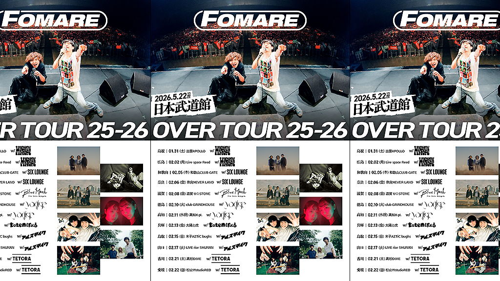 FOMARE、ツアー<OVER TOUR 25-26>第二弾ゲスト発表にTETORA、yonige、SIX LOUNGEなど