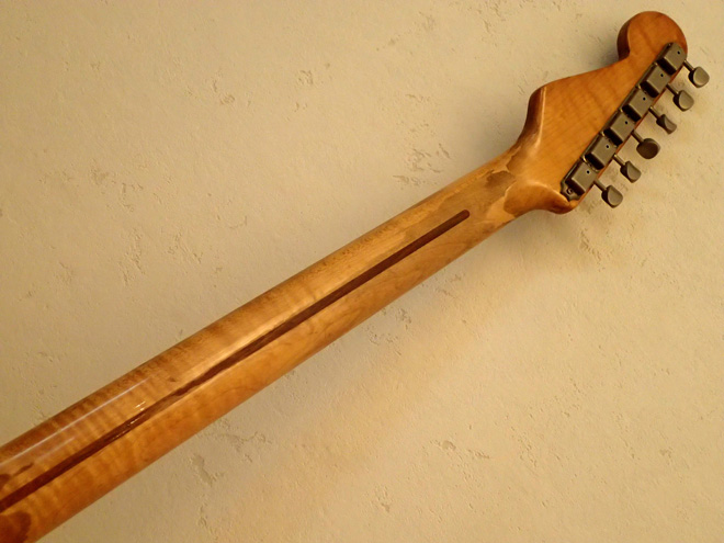 「ギターを腕力でねじ伏せるような悪癖奏法」ってカッコよすぎやろ(笑)。どんなん?文字面だけを見て見渡したら最初にザック・ワイルドを思い浮かべたけど、ロングスケール/シングルコイルのストラトとはマッチングしないよなあ…。悪魔に魂を売ったロバート・ジョンソンもストラトのイメージはゼロだしな。それにしても悪魔的にネックが凄い。極薄ニトロセルロースラッカーのモデルならではの悪魔風仕上がり。ゴリゴリに10年弾き込んで計4本。40年近くストラトだけを使いこなしてきたギタリストのプレイを見てみたい。購入時に貼られているスプリング紛失防止ステッカーを見ると「アームは一切使わん」という悪魔的強い意志が見て取れます。ギターを見ていると、その人の生きざまや信念、美学が映し出されるようですね。感服。(JMN統括編集長 烏丸)