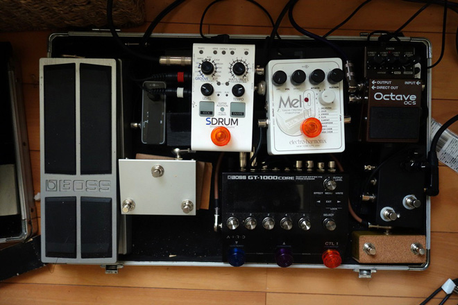 最近はジャズなどのソロギター、民俗楽器を使ったエスニック/アンビエント系のバッキングなどで演奏するだけなので、BOSSのGT1000coreをメインにしたエフェクターとともに、ピエゾサウンドをアクセントとしてミックスすれば、まさに万能ギター。