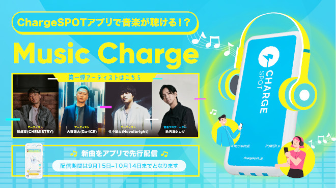 ▲「さあ」「Lonely」「Rendezvous」の楽曲はスマホ充電レンタルの「ChargeSPOT」とコラボした楽曲。ChargeSPOTとは日本全国47都道府県の駅、空港、コンビニなどに展開している持ち運び可能なスマホ充電器のシェアリングサービス。