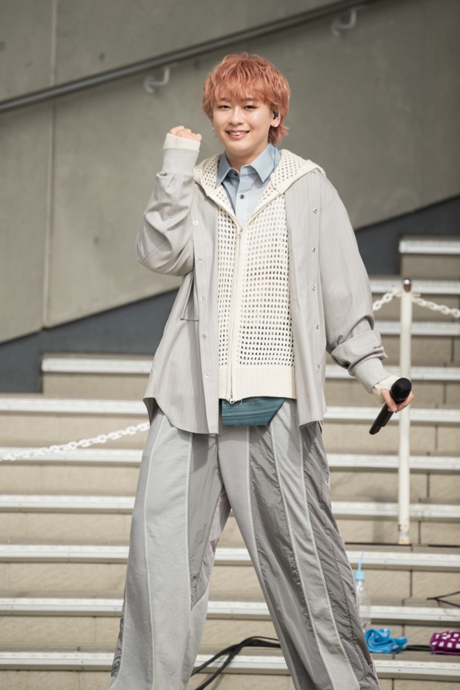 「どーも、クッパです!」とシューヤが口火を切った挨拶でも、最年少のハルが「おはようございます!」と声までキノピオになりきったり、ネスの格好で半袖半ズボンにバットを持ったマサヒロが、本番を待つ観客に「誰よりも寒い格好してるから、安心して待ってて!」と微笑んだり。肌寒い中、早朝から集まった人々を、この日だけのスペシャルパフォーマンスで心から温めた。