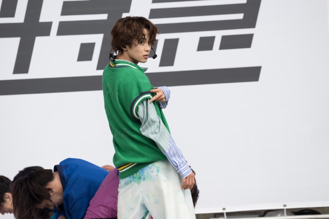 その勢いに乗って「ここにいるみんなで一緒に歌いませんか?」とシューヤがコール&レスポンスを誘い、ハルは「超特急大好きですか!?」と煽ってラストナンバー「fanfare」が始まった瞬間、雲間から太陽の光が。眩しい陽光の下で響き渡るオーディエンスの大合唱、あふれる笑顔に快活なダンス、そして互いが自由にたどるラインが極上のハーモニーを生むタカシとシューヤのツインボーカルが鳴らす“fanfare”は、あまりにも感動的なものだった。