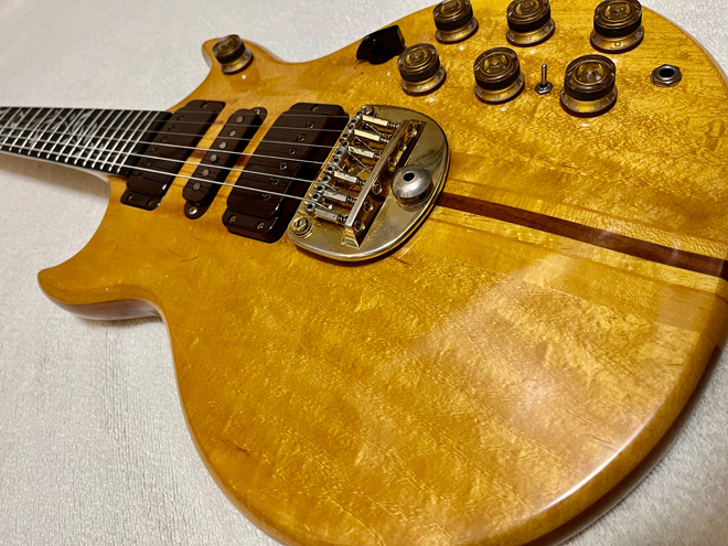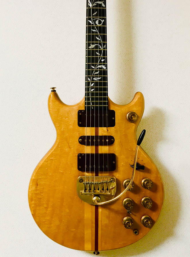 おしゃれなアイビーインレイと、異様に多いノブが気に入っています。T.S.ビブラートをはじめとする独自のパーツやアレンビックをスタイリッシュにしたようなボディデザインも秀逸です。このギターがきっかけで、EG1500も購入することになるのですが…笑 そのギターはまた機会があればご紹介させていただきたいと思います。