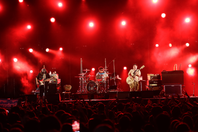 SE「MONKEY MAGIC」が流れ、湧きあがる大歓声とハンドクラップ。それをさらに煽るような手つきで山口隆(Vo, G)、近藤洋一(B, Cho)、木内泰史(Dr, Cho)がステージに登場した。その直後のこと。