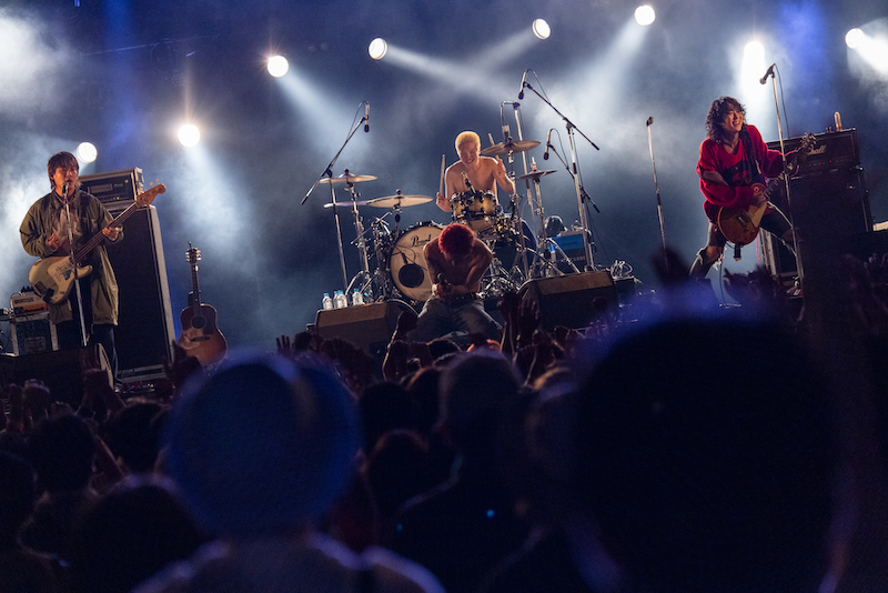 また、曲中に「歌っちゃおうぜ!」と観客へ呼びかけていたのがとても印象的だった。「歌え!」ではなく、「歌おう!」でもなく、「歌っちゃおうぜ!」。ある種の共犯関係とでも言おうか、バンドと観客で築き上げてきた関係性が見て取れる瞬間でもあった。