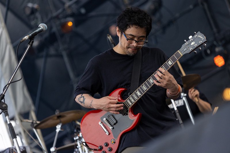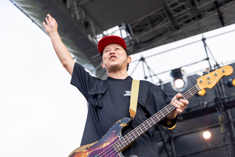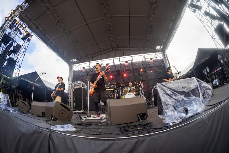 リハ中に“もっと降らせてやる”といったのは雨ではなく、HUSKING BEEの曲やメロディのことを言ったのかもしれない。なにしろ「#4」を皮切りに、間髪入れずに次から次へと曲をオーディエンスに向けて降り注ぎ続ける彼ら。普段はライブハウスをホームグラウンドに活動するHUSKING BEEではあるが、曲やメロディは野外の空気感や開放的な雰囲気によく似合う。