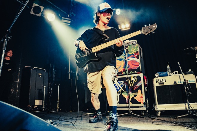 2022年に発表したファーストアルバムの曲を中心に演奏した彼ら。重厚なラウドロックサウンドと次々に畳み掛ける野太いラップで、あっという間にオーディエンスの心をつかんだ。初の鹿児島公演とは思えない堂々としたパフォーマンス。新曲「Toxic」はレゲエのリズムに自分たちの音楽遍歴と決意表明を語るリリックが乗り、心地いい。と思いきや爆音のラウドロックへと急展開。その振り幅の大きさにバンドとしての可能性が見て取れる。