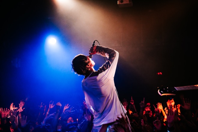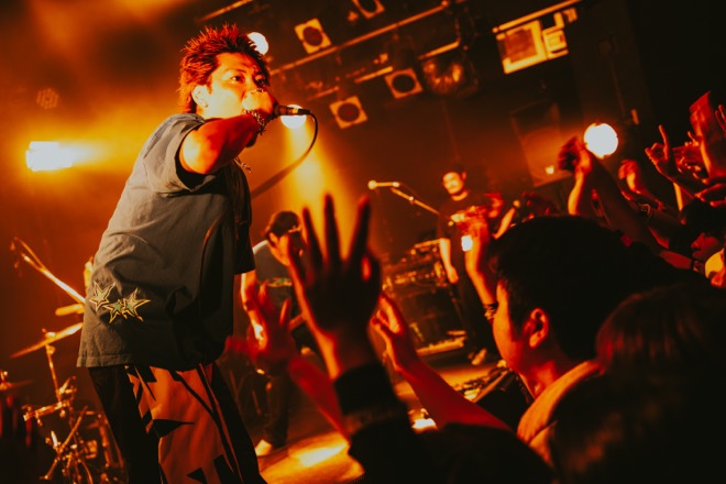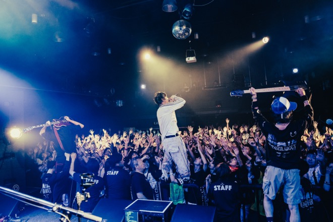 1曲目、バンドサウンドが弾けるロックナンバー「GET BACK」。1曲目とはいえバンドはすでに完成形ともいうべき一体感で、今ツアーで得られたものの大きさがうかがえる。オーディエンスの手拍子と掛け声に「鹿児島ー!」と再び雄叫びを上げた山中。「ここまで来いよ!」とダイブを呼び込むと、客はオーディエンスの波に乗り次々とステージへ向かう。「さあ!回れ!」。間髪を入れず続けた「STARGET」では、サビの《廻る 廻る》の歌詞に合わせてサークルモッシュが発生。ライブハウスごと揺れるオーディエンスを前に、体をくねらせて歌う山中のパフォーマンスも絶好調だ。