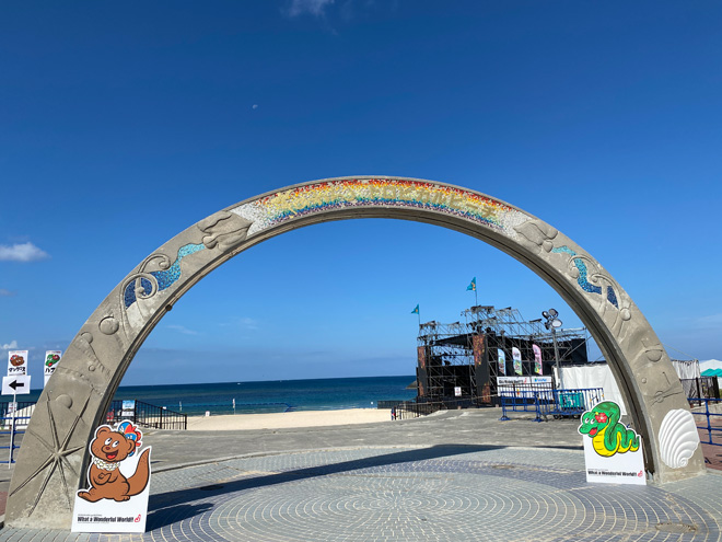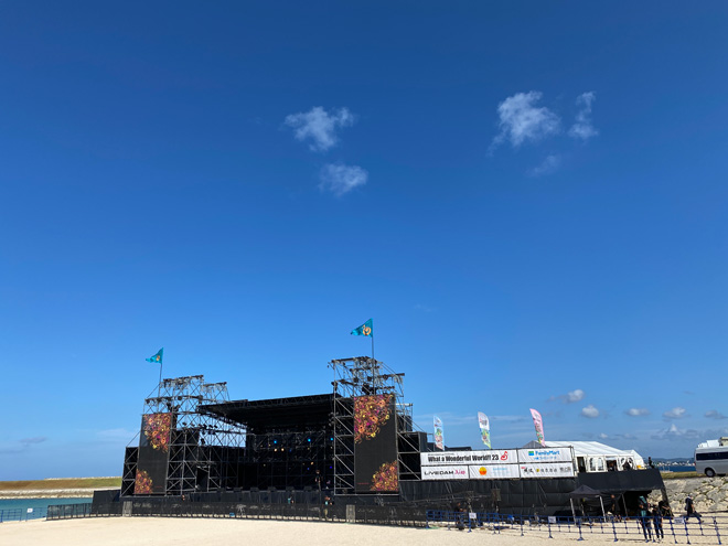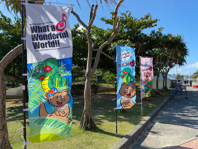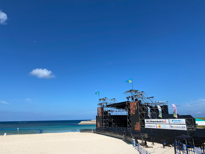 <MONGOL800 ga FESTIVAL What a Wonderful World!!23>の二日目となった11月4日、宜野湾マリーナ・トロピカルビーチ特設会場は午前10時の段階ですでに27℃という突き抜けた好天気。