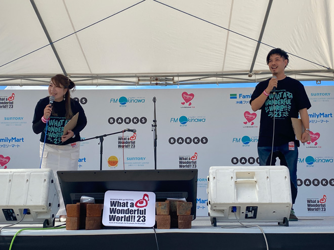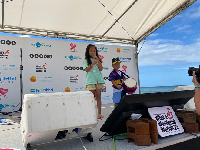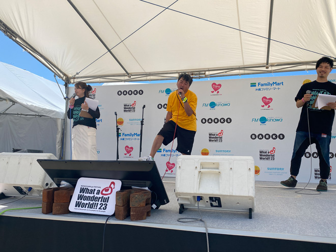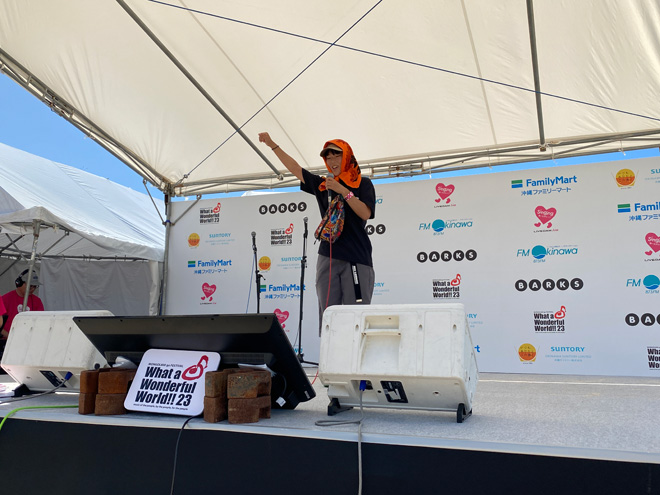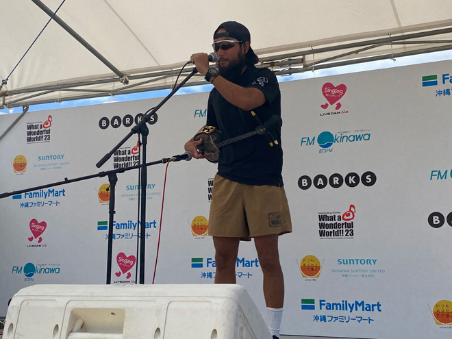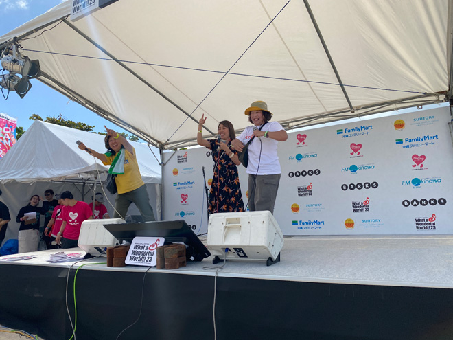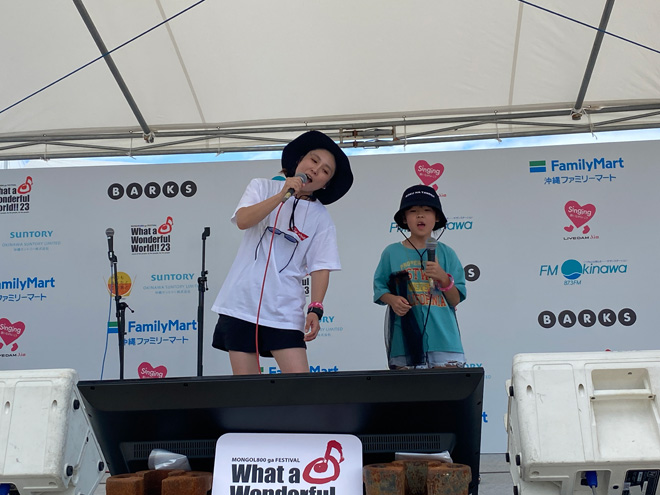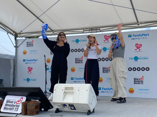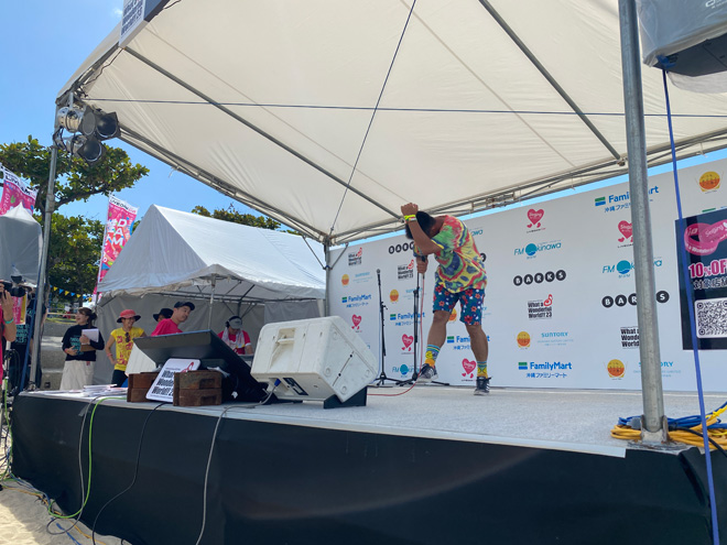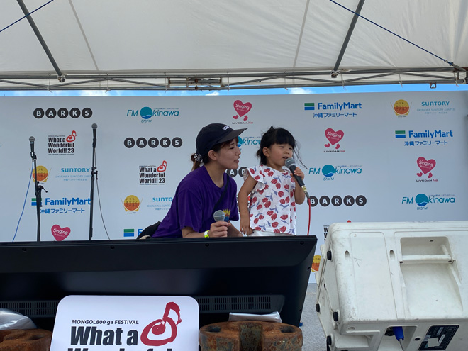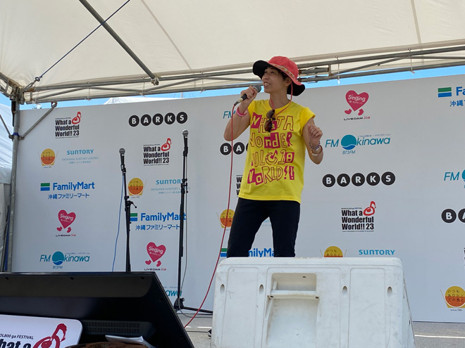 3日目となった<MONGOL800 ga FESTIVAL What a Wonderful World!!23>も、「BARKS x FM OKINAWA ワッタァステージ」はアーティストを迎えてのここだけのスペシャルトークを繰り広げ、その隙間を縫うようにカラオケ大会が開催されている。
