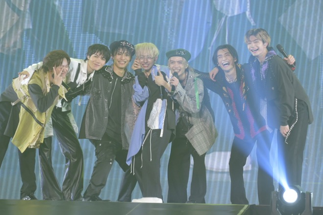 最高の多幸感のなか、最年長の武藤が「これからも僕たち7人で突き進んでいきます。ともに進んでいきましょう!」と約束し、7人で手をつないで「本日は本当にありがとうございました!」とマイクレスで一礼して、彼らにとって間違いなく節目となるライブの幕は閉じられた。