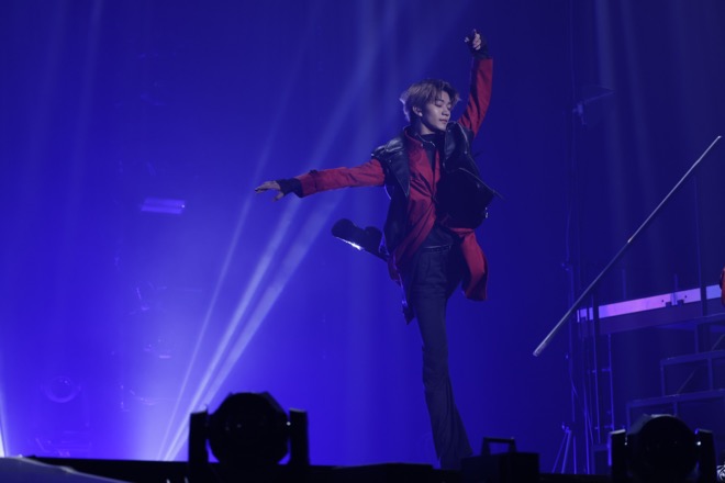 さらに、武藤を筆頭に情熱的なボーカルとラップが爆発する「Lion」でセンターステージへと飛び出し、噴き上がるファイヤーボールで場内を湧かせると、問答無用の”カッコいい”に振り切ったダンスチューン「0to1の幻想」へ。