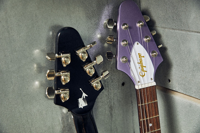 創業150周年を迎えるエピフォンが、メタリカのギタリスト カーク・ハメットの最新シグネチャー・モデル『Kirk Hammett 1979 Flying V (カーク・ハメット 1979 フライング V)』を発売した。エピフォンとカーク・ハメットの初のコラボレーションにより完成した『カーク・ハメット 1979 フライング V』は、メタリカの初期の名盤で使用されたカークの愛用する1979年製のギブソン フライングVを元に開発され、エボニーとパープル・メタリックの2色でリリースされる。