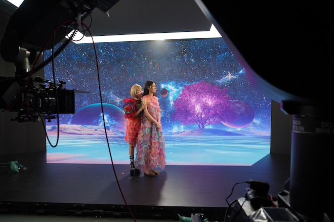Sing Sing Rabbit:エピソードは本当にたくさんあります(笑)。あの映像を作りあげるまでの準備にも相当の日数を費やしましたし。そもそもあの映像は、ハリエッド映画並の最新鋭技術力を誇るXR Studio Votion Studiosの協力がなければ、XR背景やアニメーション、砂漠での実写撮影などは不可能でした。その素材を作りあげるまでにも相応に日数をかけて、リハーサルだけで4日間、スタジオの撮影で3日間、他にも砂漠での撮影など、10日間ほどかかっています。 これは本当に裏話になりますけど、砂漠のシーンは上海から飛行機で移動しないと辿り着けない中国の銀川で撮影をしています。本当はドバイの砂漠で撮ろうとしていましたが、いろんな申請の手続きが複雑すぎて断念し、最終的に銀川へと決めました。