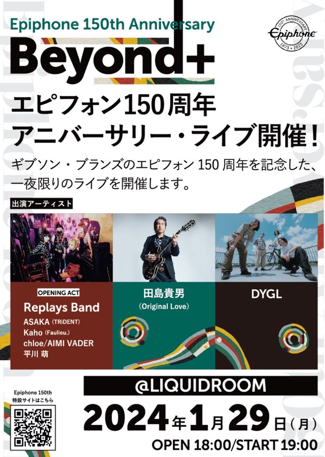 2023年にブランド創設から150周年を迎えたエピフォンのアニバーサリーを祝福する一夜限りのライブ・イベントが、2024年1月29日(月)LIQUIDROOMで開催される。