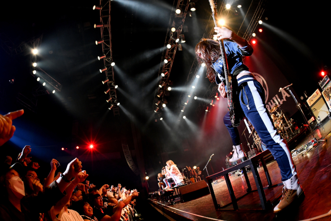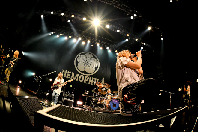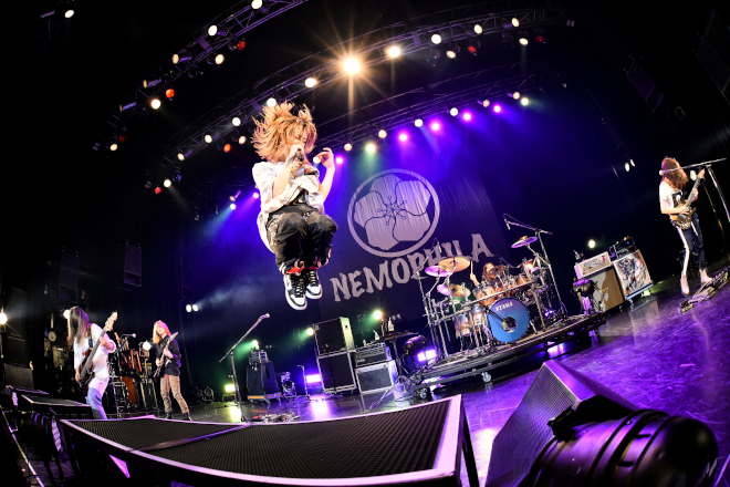 SEが鳴り響く中、観客の手拍子と歓声に包まれメンバーがステージに登場!「NEMOPHILAです。今夜は最後まででよろしく!」ヴォーカルmayuの一声で会場が沸き、M1「DISEENSION」へ。メッセージ性の強いクールなヘヴィーチューンからスピード感溢れるハードなナンバー「RISE」へと序盤からフルスロットで飛ばすNEMOPHILAに早くも会場のボルテージはアゲアゲ状態に。