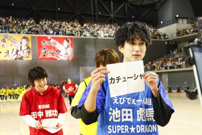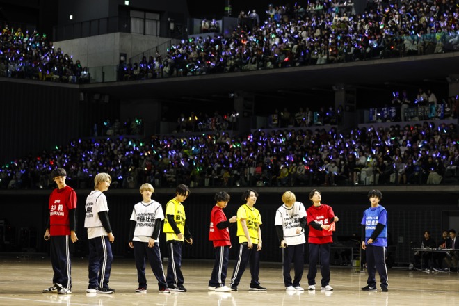 そして、今回の第3回大会には、史上最多となる全9グループ、総勢56名が参加した。超特急、M!LK、SUPER★DRAGON、さくらしめじ、ONE N’ ONLY、原因は自分にある。、BUDDiiS、ICEx、Lienelという9つグループのメンバーをシャッフルして4つのチームに分け、心と力を1つにした真剣勝負を繰り広げ、立ち見を含む約7千人のファンは旗を降って熱い声援を送った。