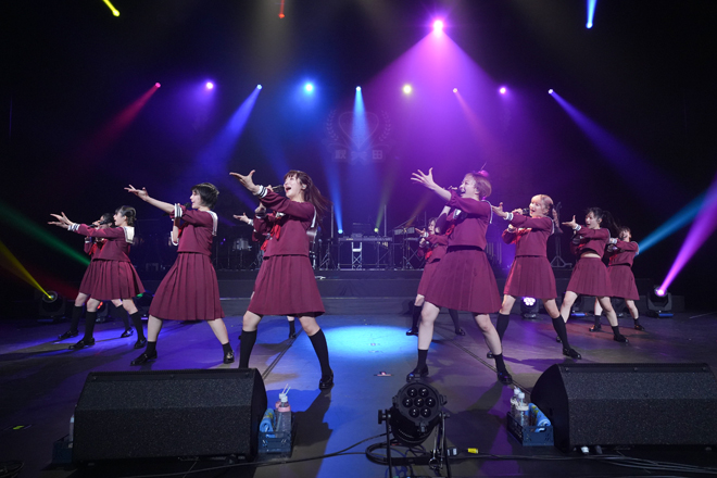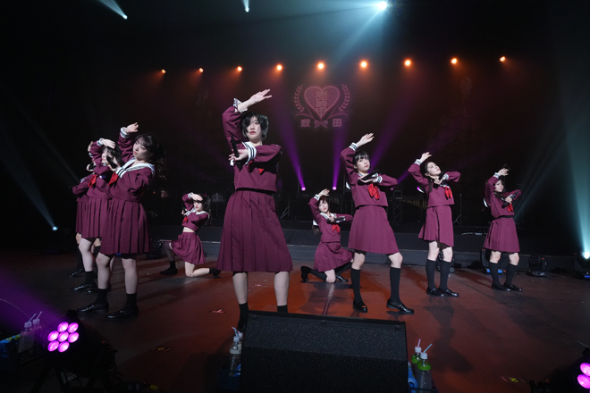 MCも標準語での自己紹介でテンポよく進行していく中、続く「イート・ザ・大目玉」「ちちんぷい」ではNAMAHAGE郷神楽の方々の迫力のある太鼓の音色に合わせたコラボパフォーマンスを披露。勢いそのままに「kyo-do?」「曇天」「大人はわかってくれない」「バタフライエフェクト」と4曲続けてエビ中のパフォーマンスで会場を盛り上げた。