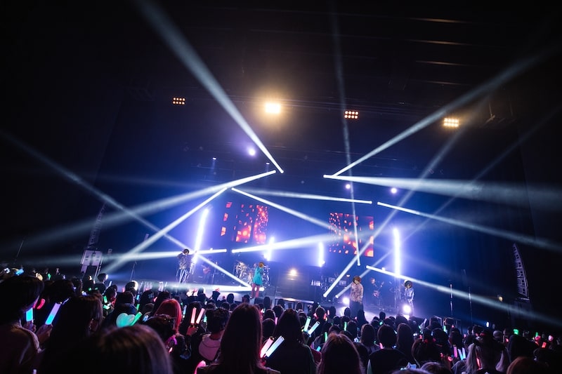本編序盤が終わると、しるばーなとまるぐりがMCを担当。さっきまでかっこよく歌っていた2人だが、ここではお互いに顔を見合わせながらフワフワほわほわした雰囲気で喋る様子に、客席からは「かわいい!」の声が飛ぶ。また、みんながどこから来たのか気になったらしく客席に向かって尋ねたところ、関東圏はもちろん、遠く北海道から来てくれたファンがいたことに驚きを隠せない様子。全国から多くのファンが応援してくれることを生で見ることができてとても嬉しかったはずだ。
