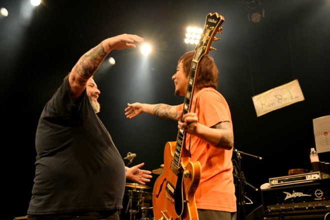 それは同曲を演奏する前に横山がこの曲をとある理由からしばらく封印していたことと、「These Magic Words」を作ったことをきっかけに「Father’s Arm」を作った時の長男に対する気持ちが今も全然変わらないことに気づき、だったら歌ってもいいんじゃないかと封印を解いた理由を語ったからだ。もちろん、語ったその内容ではなく(だから詳細はここには書かない)、そこまで一個人=横山健を曝け出したことが見どころだと思うのだが、アンコールを最大の見どころと言うことには正直、躊躇する気持ちもある。しかし、もしかしたら二度と見ることはできないのだからということを考え、もちろん本編が見応え満点だったことを前提に、この日最大の見どころだったと書かせていただきたい。
