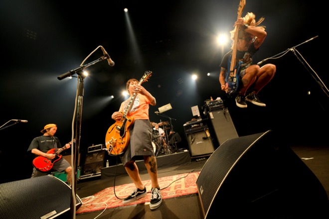 当然、『My One Wish』収録の「Tomorrow」をデュエットしている木村カエラだと思って、客席はどよめくわけだが、「ごめん。カエラは来ません。もっとかわいい人を呼んでるよ」という横山の言葉に「誰だ? 誰だ?」と頭にクエスチョンマークを浮かべている観客に歓喜の声を上げさせたのが、「サージ!」という横山の言葉だった。今はアメリカに住んでいるというKen Yokoyamaの初代ベーシストの登場に観客が沸く中、サージのボーカルで「Sucky Yacky」(坂本九の「上を向いて歩こう」のパンクカバー)を披露する。