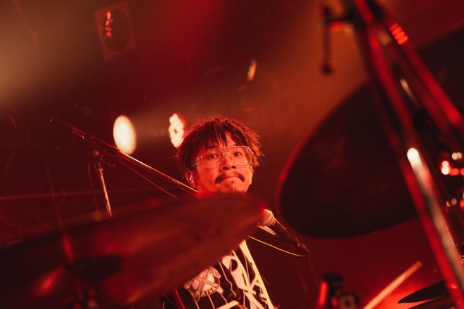 揃いのベースボールシャツを纏い、順に登場するバンドメンバー。foot vinegar=GOTO(Dr)と春日山=休日課長(B)からなる鉄壁のリズム隊を起点に、ウォームアップを促すような技巧派セッションからスタートし、最後にフロントマン、CLR=サーヤが登場。軽妙な語り口で、メンバー紹介のフリースタイルラップを披露し、簸=木下哲(G)のノイジーなリフが強烈な「Damn It!」から本編スタート。Atlantic Japanからのデビューシングル「NO SWEAT」、ロックナンバー「橋は焼かれた」「Parasite」「愚弄」とノンストップで披露。圧倒的なスキルでたたみ掛け、観客を熱狂の渦へと誘う。続く「スケベなだけで金がない」では、スケベなコール&レスポンスが行われ、会場は笑いと、ピンク色の熱に包まれた。