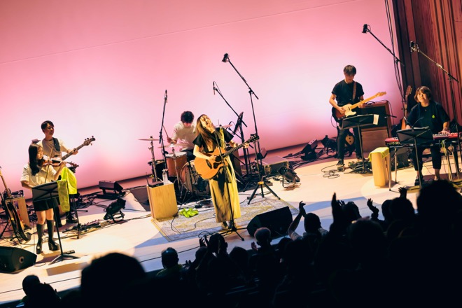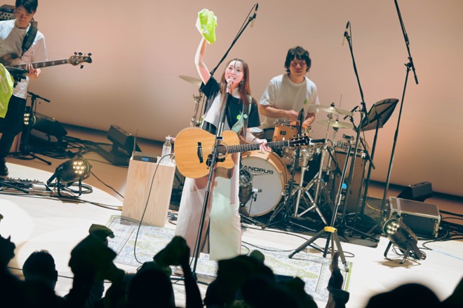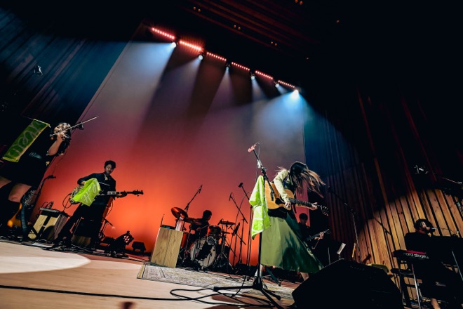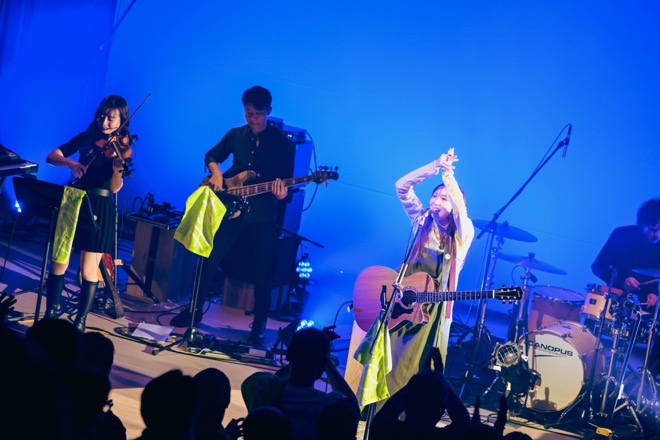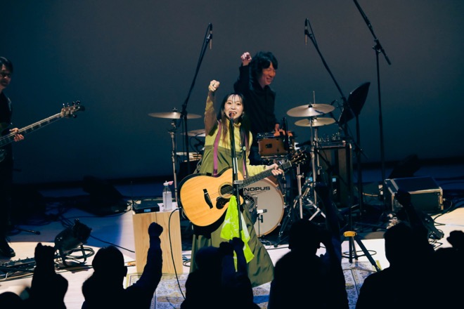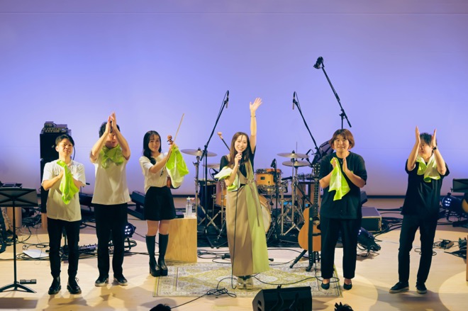 躍動感溢れる楽曲、感動的でしっとりと聴かせる楽曲、歌詞の世界観がストレートに広がるギター1本の弾き語り、ストリングスの心地良い音色、時にジャジーなサウンド、コール&レスポンスで会場が一体となって盛り上がるなど、終始アットホームで温かい空気感と笑顔が溢れた。子供連れのファミリー層を多く会場で見かけたのも納得だ。