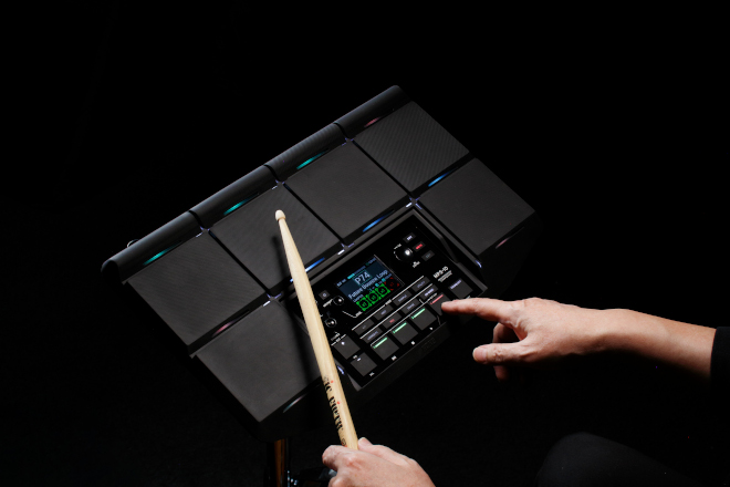 ユーザー・サンプルを簡単にインポートできるサンプラー機能は、USBメモリーから好みのサウンドを「MPS-10」に取り込み、任意のパッドにアサインしたり、プリセット・キットの一部を自分のサウンドに置き換えることも可能。鮮やかなフルカラー・ディスプレイは、明るい照明の下でも見やすく、好みに合わせて彩度を調整できる。用途で色分けされた3色のLEDが各パッドを照らし、薄暗いステージでもシームレスなパフォーマンスを実現。