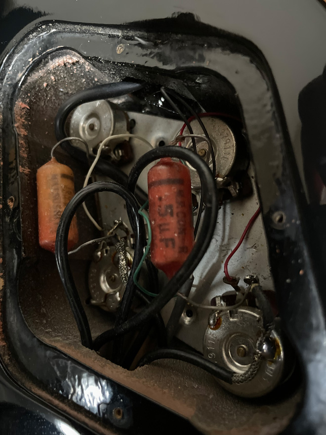 サウンド的にはどうもP-100が好きになれず(編集長、すいません!)VANZANTに交換、キャパシタもペーパーコンデンサに変更。30年眠っていた分、弾き倒したいと思います。