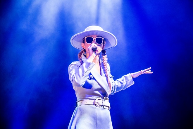 次に、タイで人気のZ世代シンガー・Miteennnが登場。凝った刺繍が施された女の子らしい白い衣装と、人懐っこい笑顔に、客席からは「かわいい~!」と声が上がる。来日は、今回が2度目。昨日は浅草観光をしたと通訳を交えて話したMiteennnは、「Let’s Go!」とかけ声をかけると「Klang Jai Klai jung」を歌唱した。ポケットから取り出したメモを頼りに、「コンバンハ、Miteennnデス。タイカラ来マシタ。次ノ歌ハ、聞イタトコ……聞イタコト(笑)? アル人モ、イラッシャルト思イマス」と、たどたどしい日本語ながらも健気に歌唱曲を紹介。「Ao Pakka Ma Wong」を歌い始めると、客席からは自然と熱い手拍子が沸き起こった。