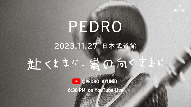 PEDROが11月26日、全国ツアーの追加公演にして千秋楽<PEDRO TOUR 2023 FINAL「洗心」>を自身2度目の日本武道館にてワンマン開催する。この翌日に同会場にて、ツアーファイナルとは異なるセットリストで行われるチケット代100円の単独公演が<赴くままに、胃の向くままに>だ。そしてこのたび、<赴くままに、胃の向くままに>がYouTube Liveで生配信されることが発表となった。