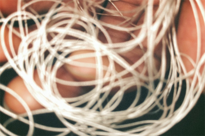 口から、なにか白くて細い、糸のようなものを吐き出しているのだ。