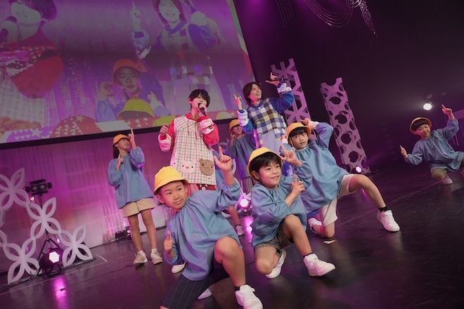 続いて、市川発案による2番目の演出「今日も生きててえらいえらい!」がスタート。スクリーン上に市川と四季涼雅が“ダンスのお兄さん”に扮し子どもたちにダンスを教える番組「おにいさんといっしょ」の映像が映し出された。ステージ上でも市川と四季が“ダンスのおにいさん”として登場しており、市川は「会場に小さな友達が来ています!」とキッズダンサーたちを呼び込んだ。しかし、キッズダンサーの中に子どもの衣装を身に着けている“大きなお友達”の椚が混ざっているという演出。椚は衣装の可愛さとギャップがあるソロパートでキレキレのダンスを披露し会場を盛り上げた。