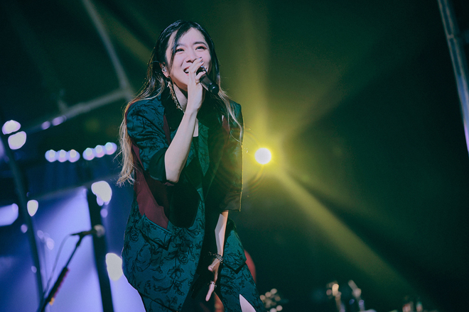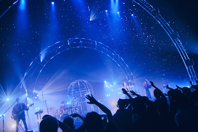 そんな大盛り上がり状態から一転、次に披露されたのは最新アルバム「5am」収録曲の中でも“思わず涙してしまう”と話題になっていた曲「December」が披露された。母を想って書いたという楽曲の披露に思わずmiiletも涙を堪える場面もあった。そしてその球体を蹴り開け、再び舞台前方に登場し「Clan」が披露。ここからはmiletの持ち味の一つでもあるロックなサウンドで畳みかけるように4曲が立て続けに披露された。