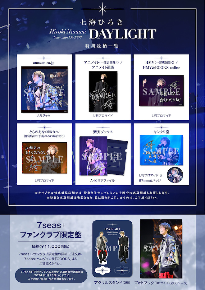 ・LIVE Blu-ray「HIROKI NANAMI One-man LIVE773 “DAYLIGHT”」特典一覧