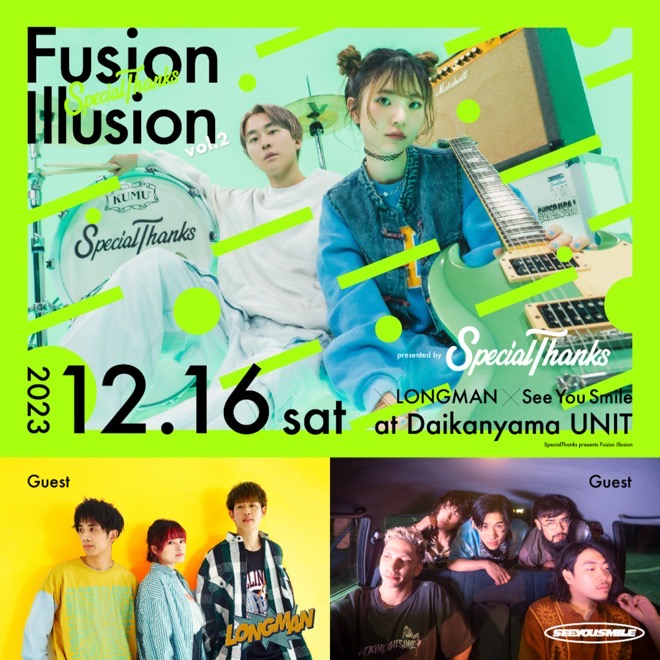 また、来月12月16日には代官山UNITにて自主企画「Fusion Illusion vol.2」を開催。ゲストにLONGMANと See You Smileを迎え、熱狂の一夜になるだろう。チケット情報や詳しくはHPを是非チェック。